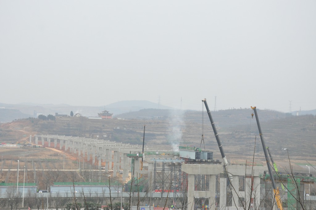 “永丰大桥桥梁只有昭鲁大道这一跨采用的是钢箱梁,其它的桥跨采用的是预制混凝土的T梁结构。本月底之前这座桥的下部结构和钢箱梁安装能全部完成,春节后就开始预制T梁的制作和安装。我们将保质量、保安全、保进度,顺利完成建设任务,我们有信心、有决心为昭通人民交上一份满意工程!”张大鹏说。