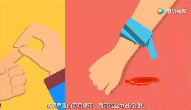 止血。若轻微出血,可用手指按压;情况严重的,可用领带、腰带、丝巾等进行捆扎。
