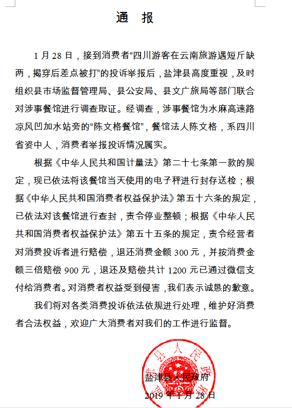 消费者投诉遭遇缺斤短两差点被打,盐津通报处理情况!