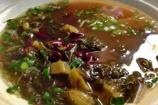 在昭通,不论是星级宾馆还是街边小店,无论是达官贵人还是寻常百姓,在饭桌上几乎都有一道百吃不厌的菜肴,那就是酸菜红豆汤。干腌菜做得酸菜红豆汤,酸味更加纯正,回味悠长,让人难忘其中滋味。如今,昭通的民营企业已经把酸菜红豆汤加工成方便食品,远销省内外。