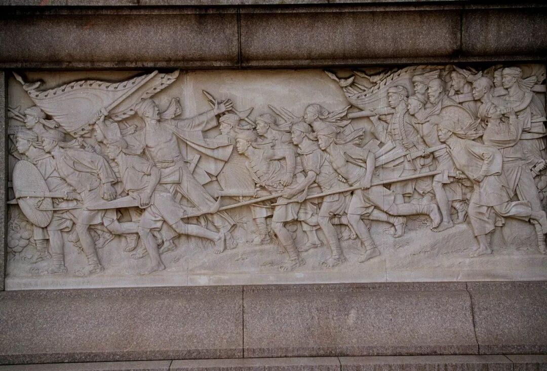 图为人民英雄纪念碑浮雕之一:金田起义 太平天国 1851年至1864年。(东侧) 新华社记者于小平摄