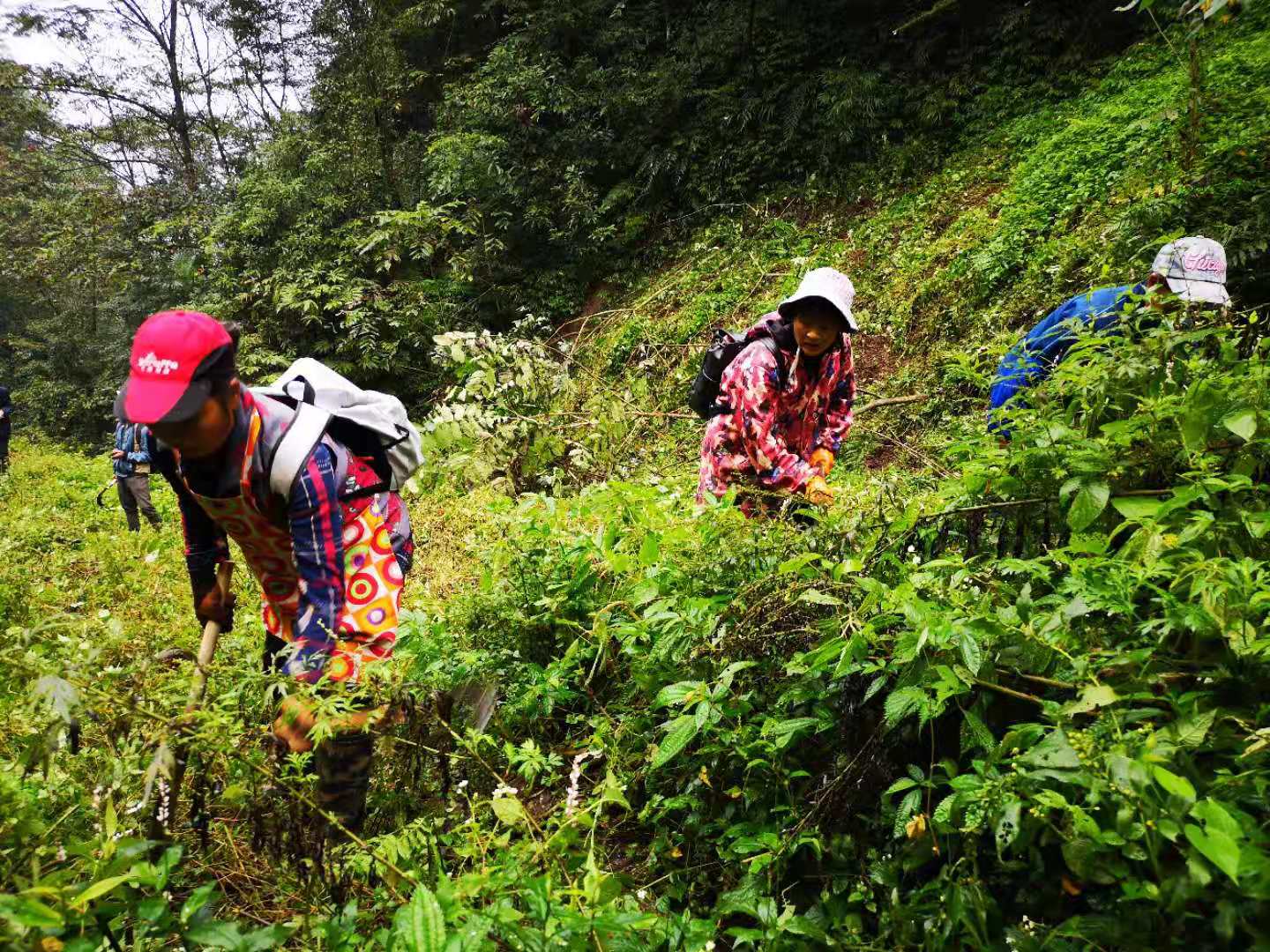 为大力发展竹产业,推进产业扶贫,连日来,绥江县中城镇绍廷村八角片区群众正在海拔1400多米的莲花山上大力开荒种竹。