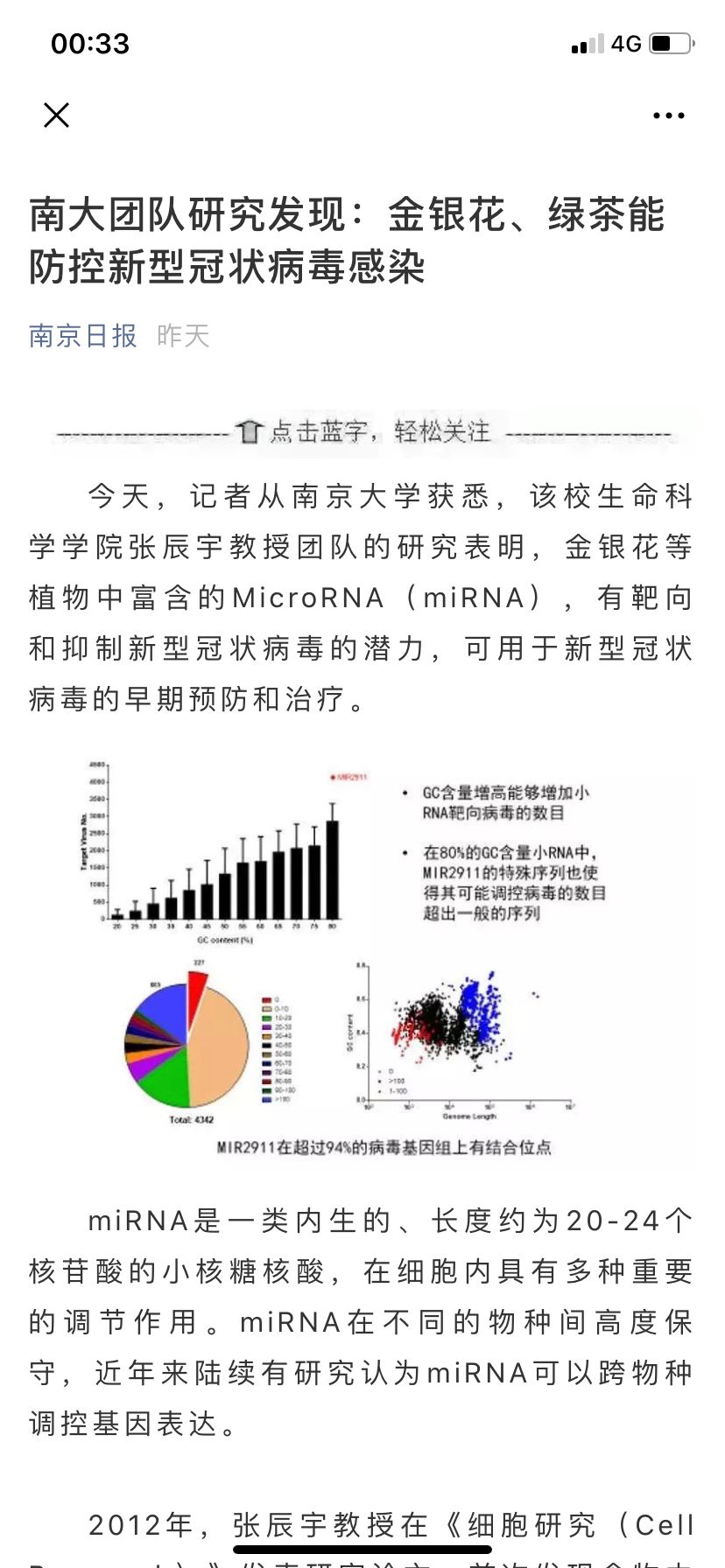 原标题:《双黄连真的有效吗?我们半夜联系了上海药物所》因为这条消息:记者31日从中国科学院上海药物所获悉,该所和武汉病毒所联合研究初步发现,中成药双黄连口服液可抑制新型冠状病毒。晚11点19分,“淘宝朝阳区断货了……都断货了。”晚11点28分,“找到个24小时营业的药店,我打个电话啊……双黄连口服液还有吗?没了啊。那什么时候会有?明天看看吧。”考虑到大家焦急的心情,国是直通车半夜联系了中国科学院上海药物所的相关人士。答:对,有抑制作用是初步发现,初步发现对病毒有抑制。答:目前还没有这么详细的研究,因为我们只是在武汉病毒所做了一个初步的验证。答:对对对,但也不能太拔高,因为这个科学的事情我们不想说得太过。答:是这样,我们后续会在上海市临床医学(研究)中心做一些实验,因为双黄连本身就是上市的药物,但是对病人如何有效,我们还要做大量的实验。问:那么消息出来,大家都去抢购双黄连,您觉得有必要吗?答:我这边没有,我不知道,我现在没办法回答您这个问题。腾讯医典医学团队刚刚说了这样一句话:目前,有一些初步证据提示双黄连口服液可能能够抑制新型冠状病毒,正在开展研究,但目前尚无有力的临床试验证据,证明其对新型冠状肺炎的疗效。双黄连口服液由金银花、黄芩、连翘三味中药组成。中医认为,这三味中药具有清热解毒、表里双清的作用。现代医学研究认为,双黄连口服液具有广谱抗病毒、抑菌、提高机体免疫功能的作用,是目前有效的广谱抗病毒药物之一。南京日报报道称,南大团队研究发现:金银花、绿茶能防控新型冠状病毒感染。报道中称,(南京日报)记者从南京大学获悉,该校生命科学学院张辰宇教授团队的研究表明,金银花等植物中富含的MicroRNA(miRNA),有靶向和抑制新型冠状病毒的潜力,可用于新型冠状病毒的早期预防和治疗。对于任何科研、医疗的最新发现,请大家有怀着一颗敬畏之心。我觉得上海药物所的那句话说得特别好:科学的事情我们不想说得太过。