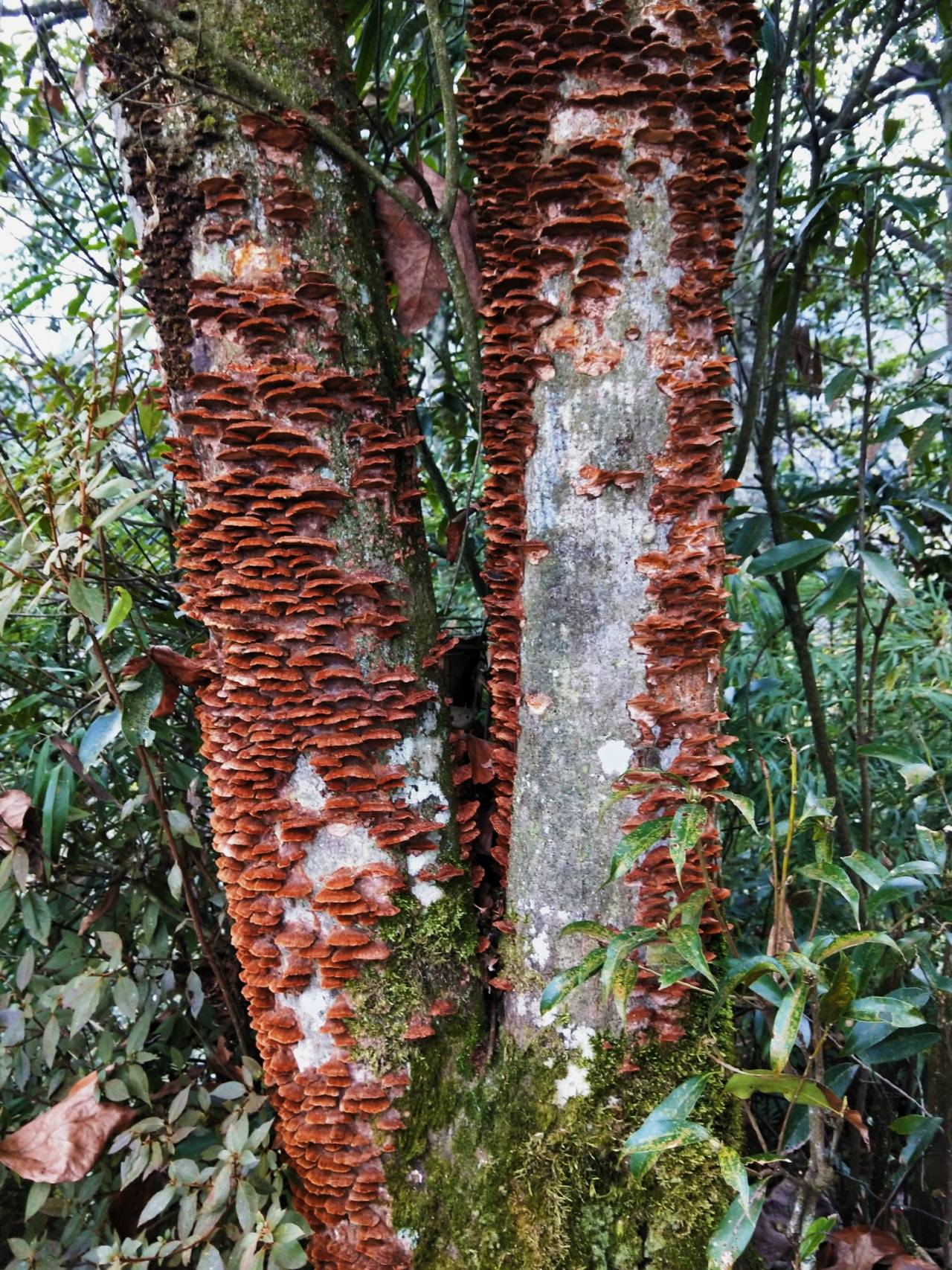 随后便进入铜锣坝林区,这时的海拔已是1500米左右,这时群山绵延逶迤、秀美温柔。这密林长于此不知多少年了,只见得千年古树参天蔽日,时有巨杉十人方能合抱,更有“史前活化石”之称的珙桐密布其间。春季的铜锣坝密林万物复苏,草木发出青嫩的芽尖,青翠欲滴;夏季有“鸽子花”之称的珙桐花盛开,清风拂过,林间宛如万千白鸽飞舞,灵动可爱;秋天的铜锣坝更是色彩斑斓、引人入胜,一夜之间出现“五彩林”,红的、黄的、褐的、绿的、白的,不知是哪位爱好丹青的神仙肆意而为,这绚烂的色彩美得酣畅淋漓,毫不逊色于九寨沟;“绚烂之极,归于平淡”。当枯叶落尽便是铜锣坝的冬季了,冬季的铜锣坝别有一番美丽,如遇一夜雨雪后放晴,水气便凝结于树枝结成小冰凌,漫山遍野的玉树琼花、银装素裹,这种其他地方难得一见的自然奇观,却是铜锣坝冬季的常景。