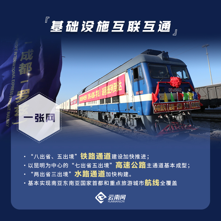 《建议》提出,我省将完善省内综合交通运输网络和省际运输通道,推动中缅国际运输通道建设取得重大突破,中越、中老泰国际运输通道全面畅通。打造昆明国际航空枢纽。加快面向南亚东南亚的国际通信枢纽建设,推动建设面向南亚东南亚数字经济产业先行示范区。科学合理规划跨境物流网络体系,建设跨境物流中心,提升通关贸易便利化水平,建设面向南亚东南亚的国际物流枢纽。
