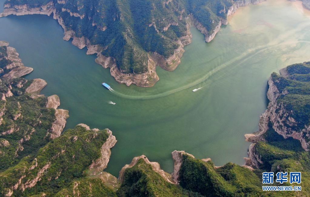 这是在河南济源拍摄的“黄河三峡”景色(2020年9月12日摄,无人机照片)。新华社记者 郝源 摄