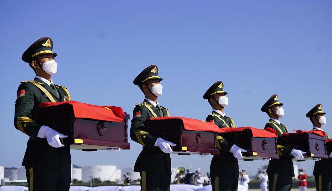 2020年9月27日,中韩在韩国仁川举行第七批在韩中国人民志愿军烈士遗骸交接仪式