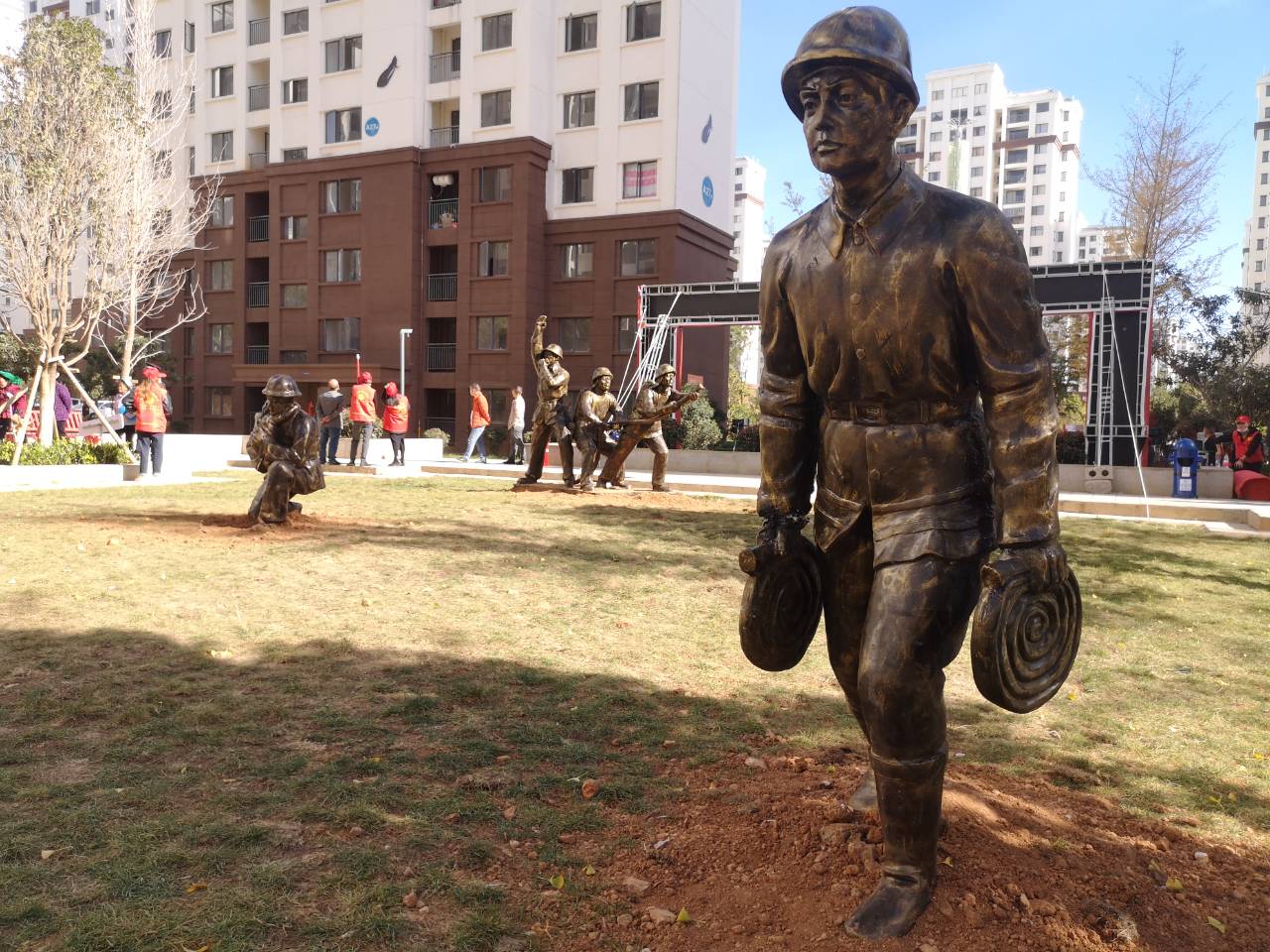 红路馨居消防主题文化广场由昭阳区消防救援大队和区搬迁安置局精心筹划和建设,设计理念紧扣知识性、互动性、趣味性、教育性。广场沿路设置了消防宣传栏、消防安全标识和消防员雕塑。宣传栏内容涵盖消防法律法规、电动车火灾防范、家庭防火、灭火逃生知识、消防标识等多个方面,集科普宣传和休闲娱乐于一体。