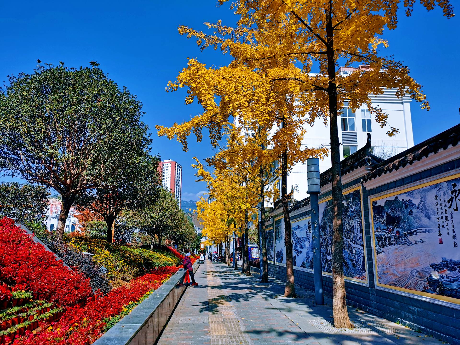 时值初冬时节,永善县城公园、广场等地栽植的银杏树叶逐渐变为金黄,构成了一道道赏心悦目的风景线,把永善县城装扮得亮丽多彩,引来广大市民驻足欣赏游玩。