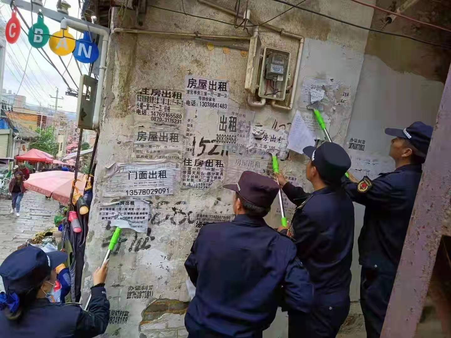针对城市主次干道、农贸市场、公园广场、公交车站台等人流量大的区域,昭阳区综合执法局强化日常监督检查,联合网格中队全域排查,专项治理和常态化管控相结合,全面消除墙面、树干、电线杆、路面、电力通信设施箱体表面小广告;对小区、社区、背街小巷等区域,联合相关网格责任单位,按行业部门监管及属地管理原则,“拉网式”排查整改后交付责任物业、责任社区、责任网格单位监管,同时协同小区物业、办事处、社区,规范设置公共信息发布区域,强化宣传引导,疏堵结合;对铲涂遮盖无效的墙面广告,根据建筑物特点,增加喷漆面积;联合公安、工信等部门,清除小广告的同时,向辖区派出所及工信部门报备,强化源头治理;严格落实“门前三包”责任制,针对主次干道临街商户,责令商家全面清洗门帘喷涂广告、粉刷破损墙面,确保街道临街立面干净清爽。开展“专项整治”工作以来,共计清理城市“牛皮癣”小广告2.16万平方米,查处张贴散发广告128起,清理城市脏污墙面3.01万平方米。