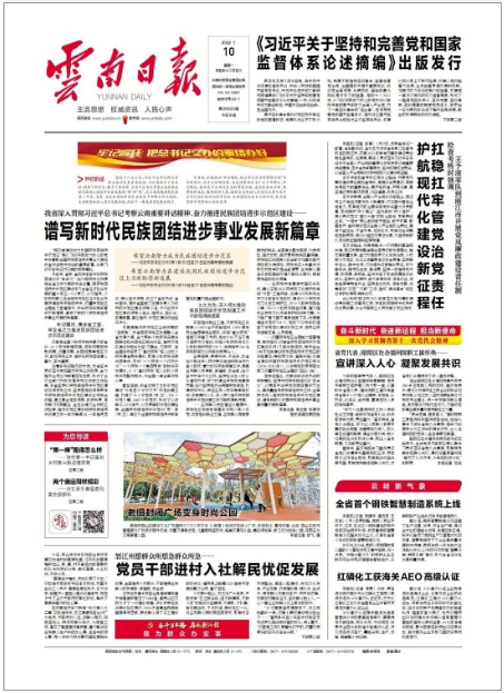 2020年1月19日至21日,习近平总书记再次亲临云南考察,殷切希望云南正确认识和把握在全国发展大局中的地位和作用,坚持新发展理念,不断增强边疆民族地区治理能力,保障和改善民生,践行初心使命,努力在建设我国民族团结进步示范区、生态文明建设排头兵、面向南亚东南亚辐射中心上不断取得新进展,谱写好中国梦的云南篇章。