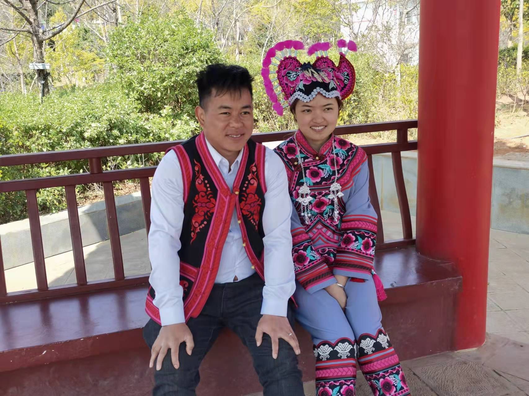 经过交谈得知,李彦洁是直苴村百岁赛装老人李永福嫫的孙女,张学平是李彦洁的丈夫。星期六,他们专程到永仁县城购物,正好在凉亭里休息。