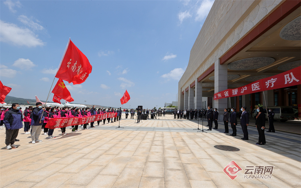 4月22日,省委、省政府在昆明长水机场举行仪式,为云南省援沪医疗队第三批158名队员送行。