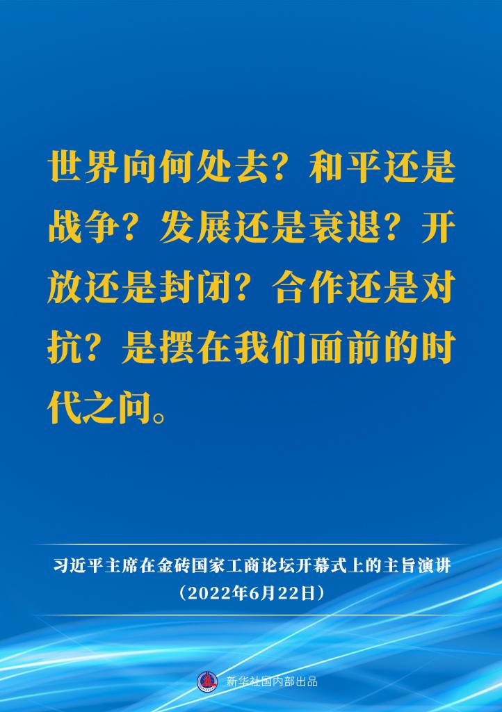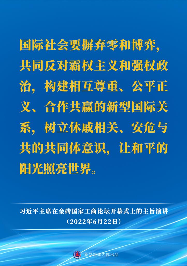 6月22日晚,国家主席习近平以视频方式出席金砖国家工商论坛开幕式并发表题为《把握时代潮流 缔造光明未来》的主旨演讲。主旨演讲有哪些主要内容?请看↓