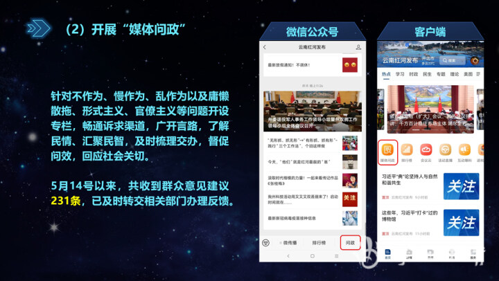 在各媒体平台开通“媒体问政”专区,畅通群众、基层、企业诉求渠道,广开言路;