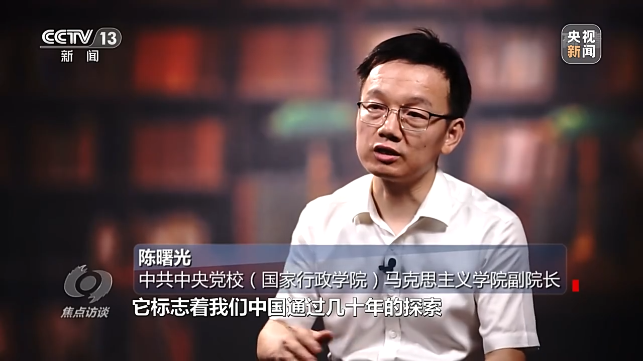 中共中央党校(国家行政学院)马克思主义学院副院长 陈曙光:它标志着中国通过几十年的探索,找到了一条符合中国国情的,实现中华民族伟大复兴的正确道路;同时它也标志着我们拓展了发展中国家走向现代化的途径,为广大的发展中国家实现现代化,开辟了一条不同于西方现代化道路的新的模式;第三标志着我们为人类文明进步作出了中国的贡献。