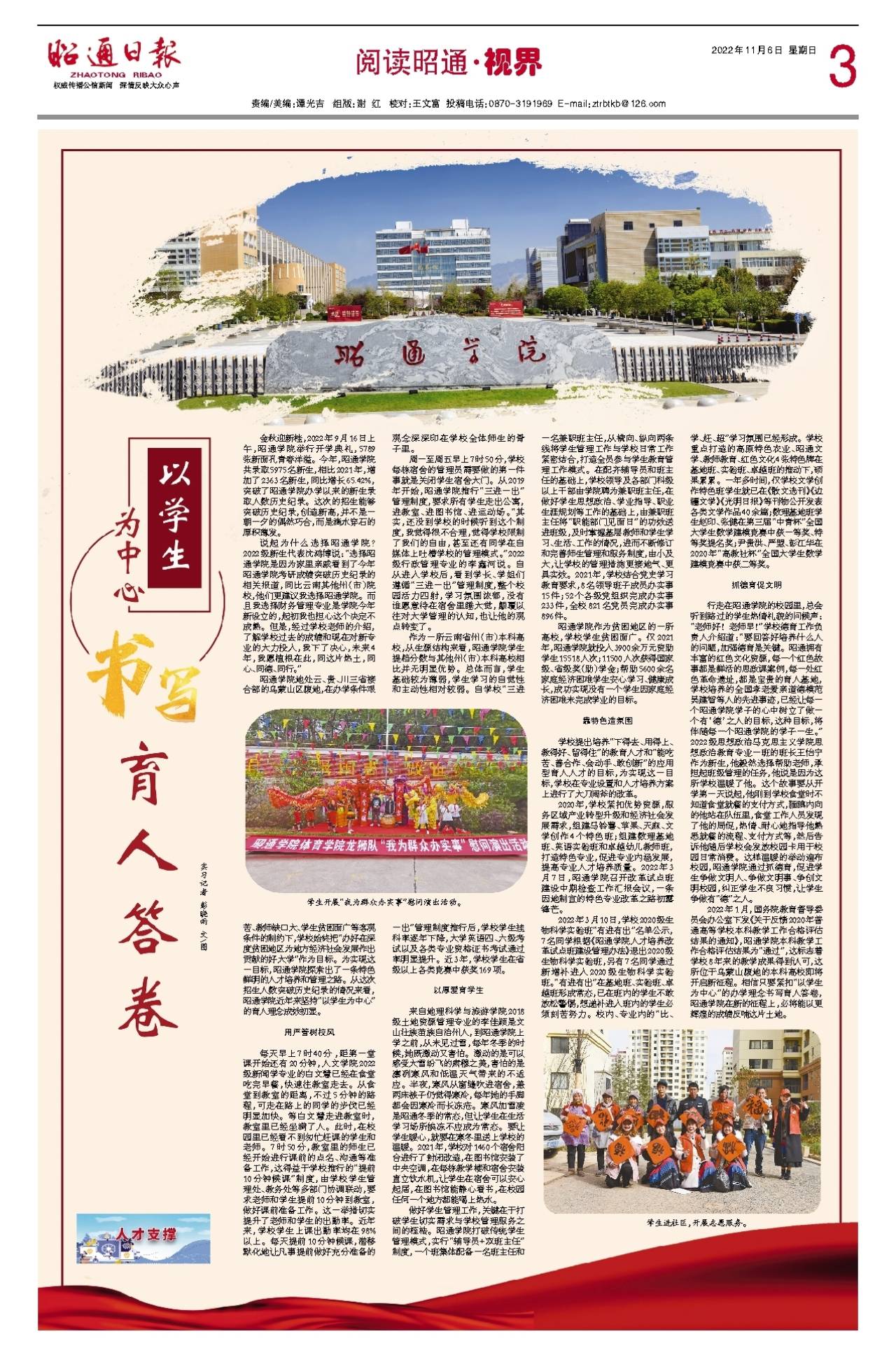 2022年1月,国务院教育督导委员会办公室下发《关于反馈2020年普通高等学校本科教学工作合格评估结果的通知》,昭通学院本科教学工作合格评估结果为“通过”,这标志着学校8年来的教学成果得到认可,这所位于乌蒙山腹地的本科高校即将开启新征程。相信只要紧扣“以学生为中心”的办学理念书写育人答卷,昭通学院在新的征程上,必将能以更辉煌的成绩反哺这片土地。