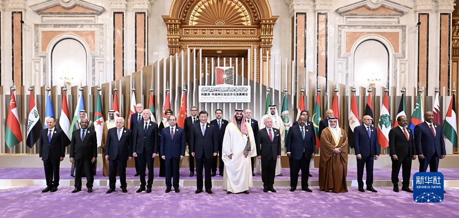 当地时间12月9日下午,首届中国-阿拉伯国家峰会在沙特首都利雅得阿卜杜勒阿齐兹国王国际会议中心举行。国家主席习近平和沙特王储兼首相穆罕默德、埃及总统塞西、约旦国王阿卜杜拉二世、巴林国王哈马德、科威特王储米沙勒、突尼斯总统赛义德、吉布提总统盖莱、巴勒斯坦总统阿巴斯、卡塔尔埃米尔塔米姆、科摩罗总统阿扎利、毛里塔尼亚总统加兹瓦尼、伊拉克总理苏达尼、摩洛哥首相阿赫努什、阿尔及利亚总理阿卜杜拉赫曼、黎巴嫩总理米卡提等21个阿盟国家领导人以及阿拉伯国家联盟秘书长盖特等国际组织负责人出席峰会。习近平在会上发表题为《弘扬中阿友好精神携手构建面向新时代的中阿命运共同体》的主旨讲话。新华社记者 谢环驰 摄