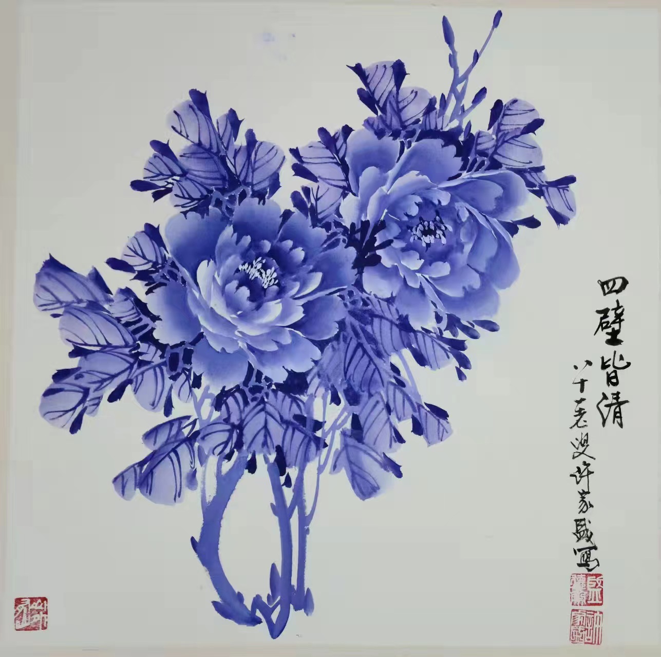 牡丹是国画花卉中经常描绘的题材,历代诗人、画家创作出无数赞美牡丹的诗句和画作,用以寄托自己的美好情感。许家盛喜欢画牡丹,他的画作写实性很强,同时也画出了牡丹的魂魄。他画的牡丹自然秀气,淡浓相宜,干净利落,色彩明快, 层次分明,或含苞,或待放,造型生动,彰显灵动芳香。在那清丽的色彩、淡雅的水墨、疏落的用笔及简约的构图之中,我品味到“清水出芙蓉,天然去雕饰”的审美情趣。很多朋友讨要到许家盛带有富贵之气的牡丹画作,悬挂在家里不但能够美化居室、陶冶情操,还能给居室带来吉祥之气。
