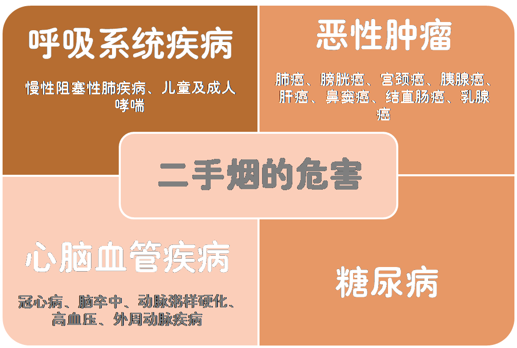 烟草烟雾中含有数百种有毒有害物质,其中至少69种能够致癌。烟草每年使我国100多万人失去生命,如不采取有效行动,预计到2030年将增至每年200万人,到2050年增至每年300万人。吸烟和二手烟均可对健康产生严重危害。