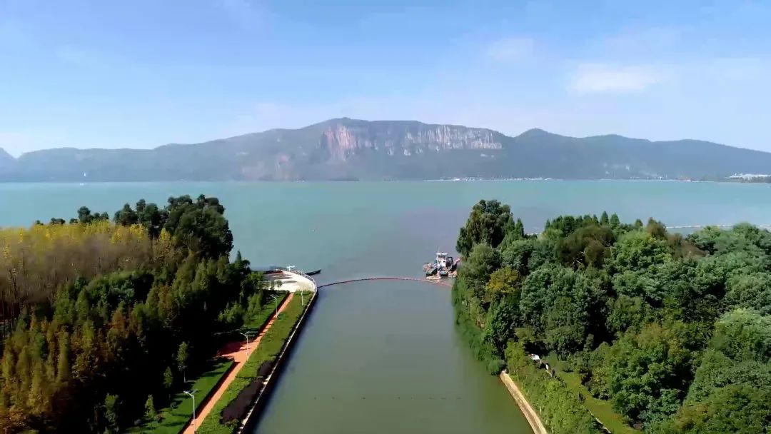 空中俯瞰红石岩堰塞湖综合水利枢纽工程。江文耀 摄