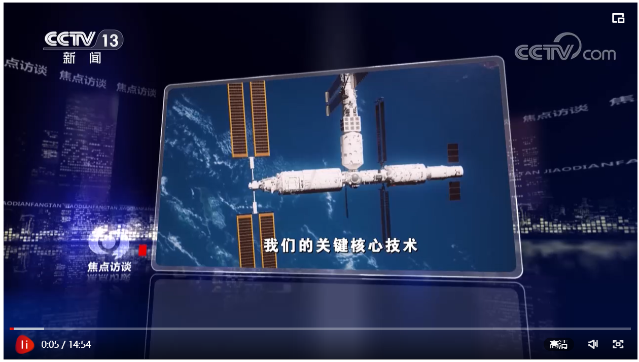 中国工程院院士、中国航天科技集团五院空间站系统总设计师杨宏:“中国航天是受国外封锁六十多年。所以我国要发展载人航天,建造国家太空实验室,开展大规模的科学实验,只能依靠我们国家自己的科技力量,独立自主来进行建造。我们的关键核心技术都是拥有完全知识产权,我们每一台产品全部是国产化,我们的核心元器件百分之百国产化。”