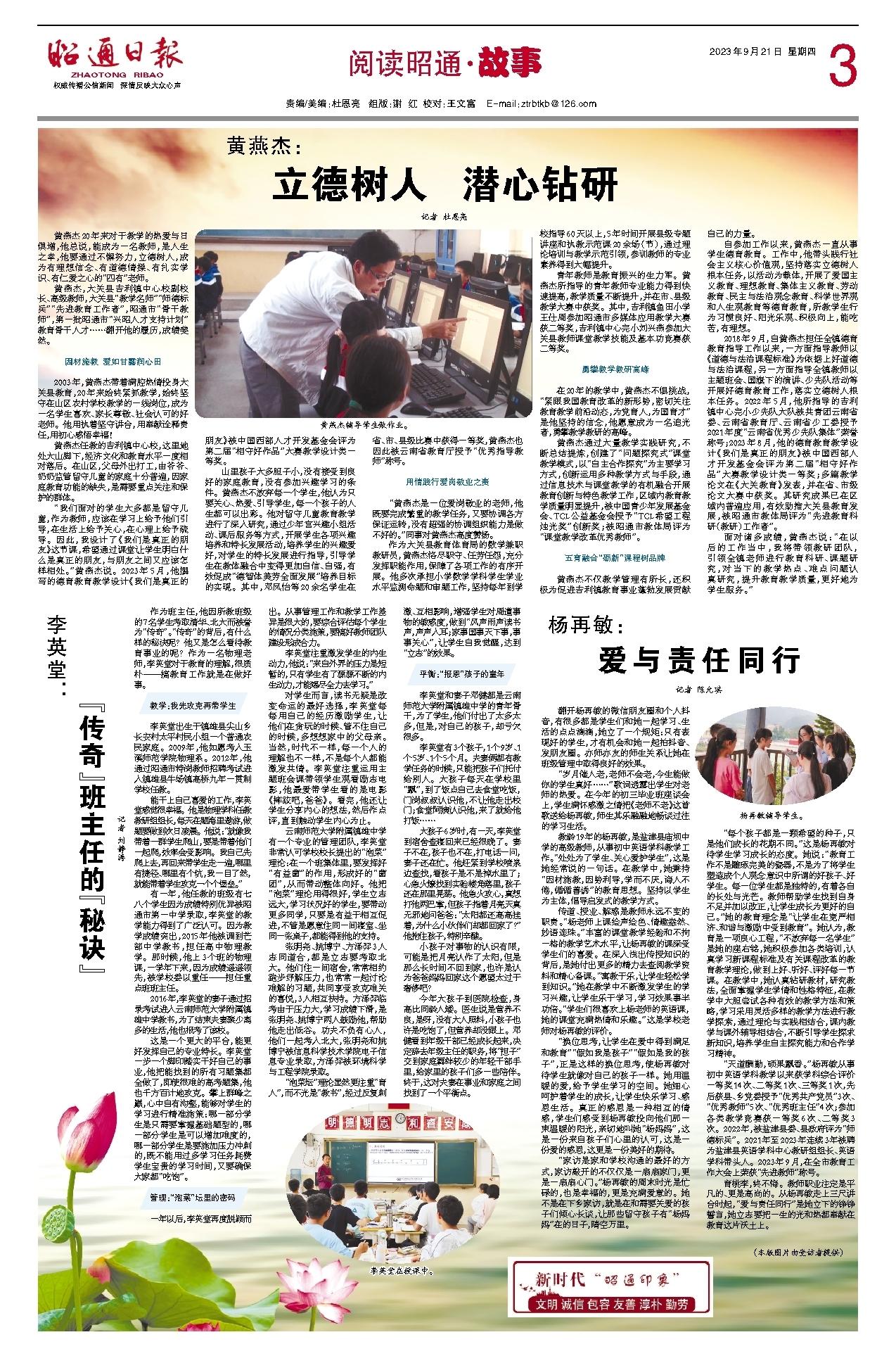 育桃李,终不悔。教师职业注定是平凡的、更是高尚的。从杨再敏走上三尺讲台时起,“爱与责任同行”是她立下的铮铮誓言,她立志要把一生的光和热都奉献在教育这片沃土上。
