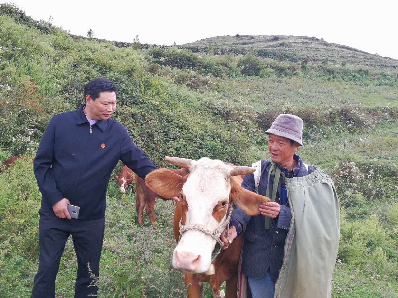 大关县琦鑫黄牛养殖农民专业合作社向困难群众发放黄牛。