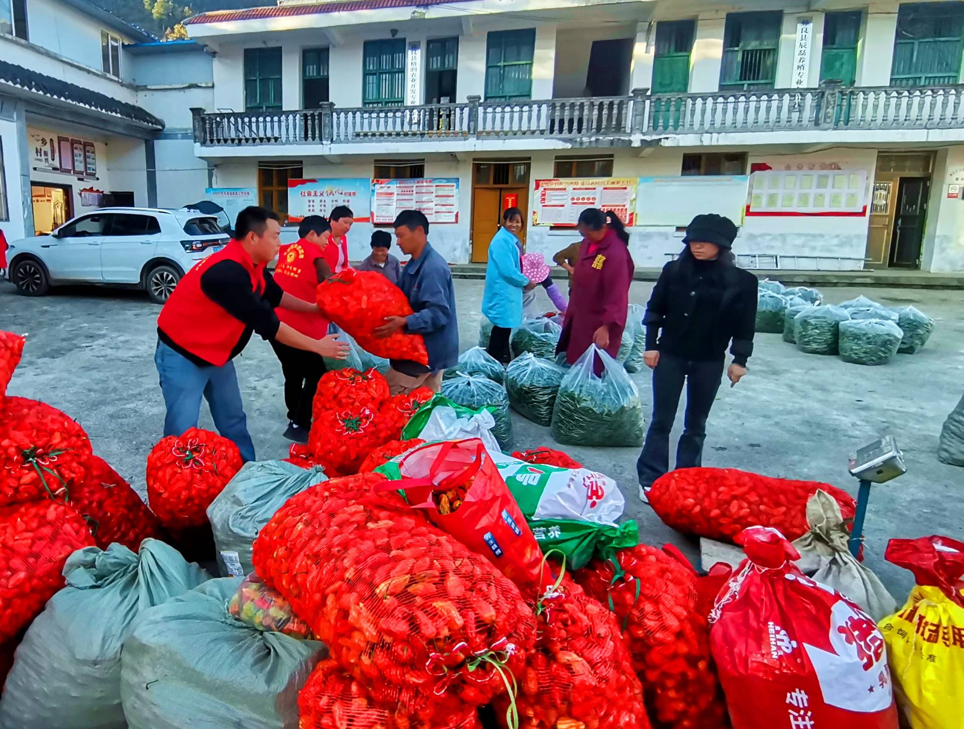 分拣、称重、装车、付款一气呵成,10月31日,彝良县龙安镇三乐村委会广场热闹非凡,当地群众喜滋滋地将新采摘的辣椒送到这里统一出售,现场一派繁忙景象。