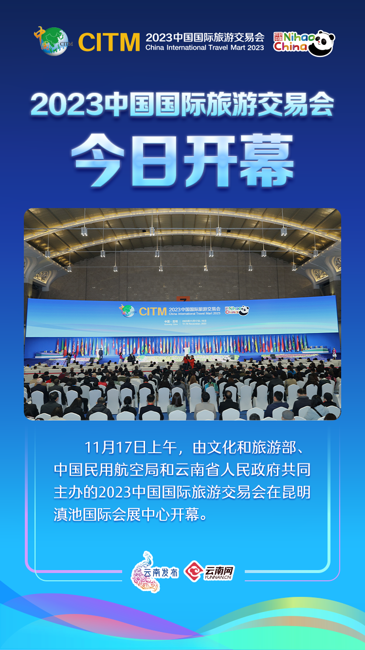 11月17日上午,由文化和旅游部、中国民用航空局和云南省人民政府共同主办的2023中国国际旅游交易会在昆明滇池国际会展中心开幕。本届旅交会主题为“你好!中国”,展期3天,展览面积约9万平方米,共设置6个专题展区,包含国际与新业态馆、旅游目的地与文博创意馆、旅游目的地馆、开幕式与文旅企业馆、云南文化和旅游主题馆、非物质文化遗产和旅游消费馆、农文旅融合特色资源馆、体育旅游馆、旅游装备展示馆9个展馆、约5000个标准展位,吸引了南非、泰国、缅甸、柬埔寨、越南、尼泊尔、马来西亚、老挝8个国家旅游部以及联合国世界旅游组织、世界旅游联盟、亚太旅游协会、国际山地旅游联盟、太平洋旅游组织、上合组织6个组织的代表参加,参会参展的国家和地区共计70个,国际旅行商有892人。本届旅交会向全球正式推出中国国家旅游形象:“你好!中国”(英文为“Nihao! China”),期间还将举办全球旅行商大会、中国入境旅游政策解读发布会、滇池对话等配套活动。云南是本届旅交会展出规模最大、设置展台最多的省份。云南展区以“有一种叫云南的生活”为主题,展览面积2万多平方米,搭建80个特装展位、264个标准展位,全省16个州(市)文旅局以及省内外580家单位、企业、相关组织参展。本届旅交会还首次设立分会场(普洱),全面展示云南优质的茶旅产品。