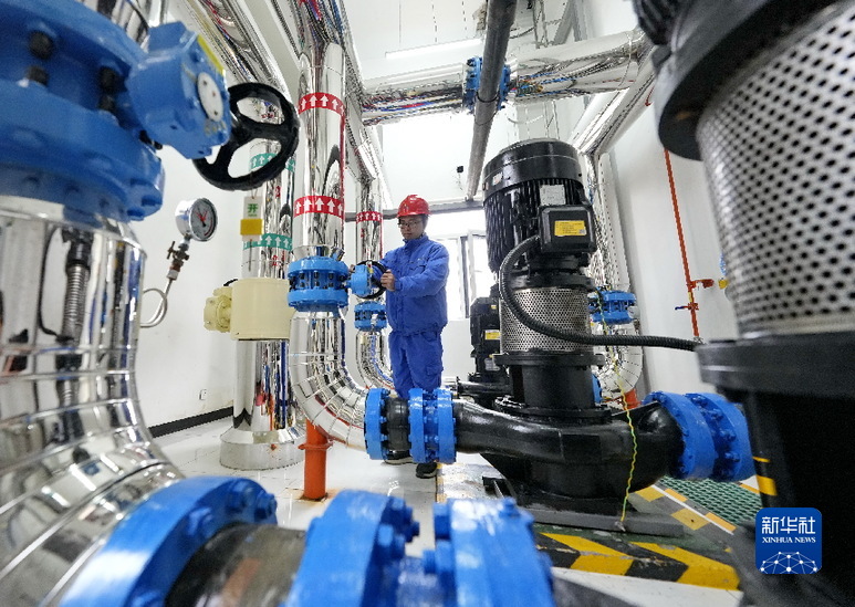 11月15日,唐山港能投智慧能源有限公司工作人员在唐山市路南区一处供热站内检查供暖设备。新华社记者 牟宇 摄