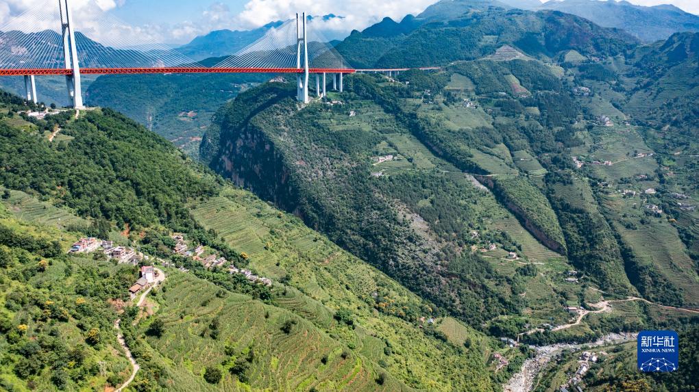 贵州、云南交界处的杭瑞高速北盘江大桥(2023年8月15日摄,无人机照片)。新华社记者 陶亮 摄