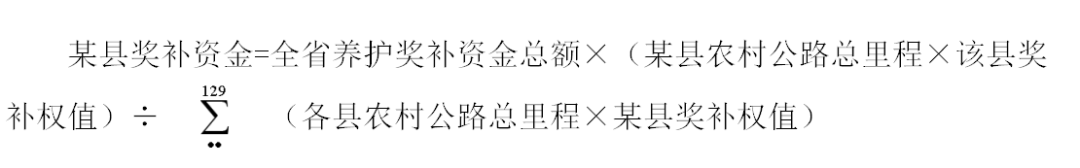 某县其他养护补助资金基数=中央养护补助资金总额×(某县农村公路总里程÷全省农村公路总里程)
