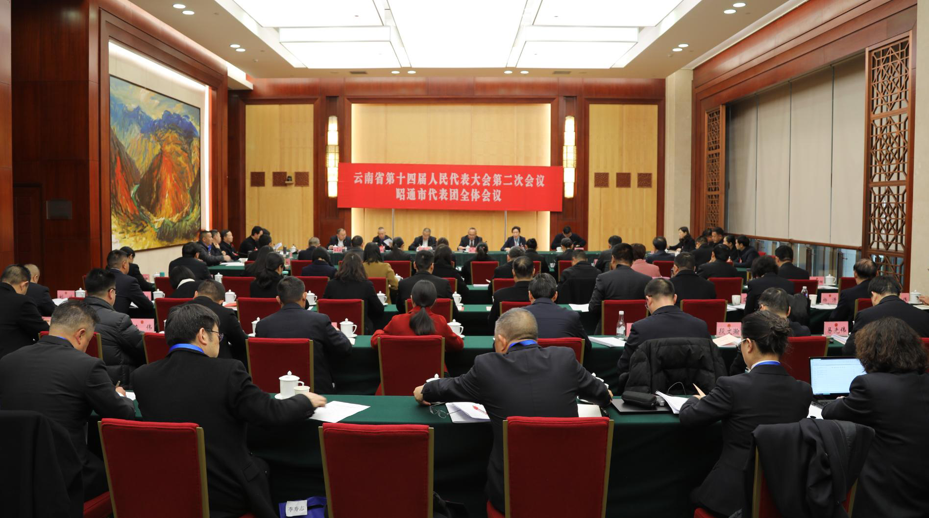 1月27日上午,出席云南省第十四届人民代表大会第二次会议的昭通市代表团举行全体会议,审议省高级人民法院工作报告、省人民检察院工作报告。