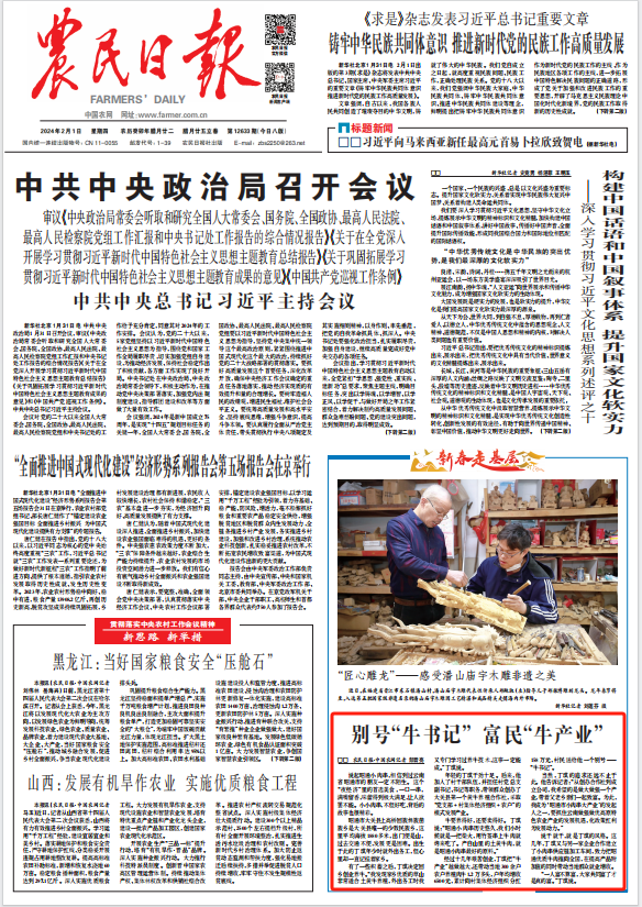 别号“牛书记” 富民“牛产业”!《农民日报》头版聚焦昭通小肉串背后的故事