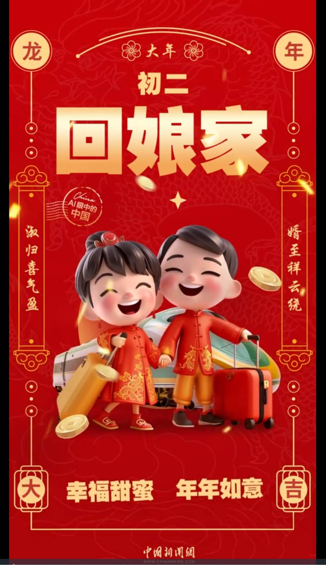 今天是春节第二天,也是年俗中出嫁的女儿带着丈夫和孩子回娘家拜年的好日子,来看看AI眼中的大年初二要怎么过。新的一年,祝大家幸福甜蜜,年年如意!