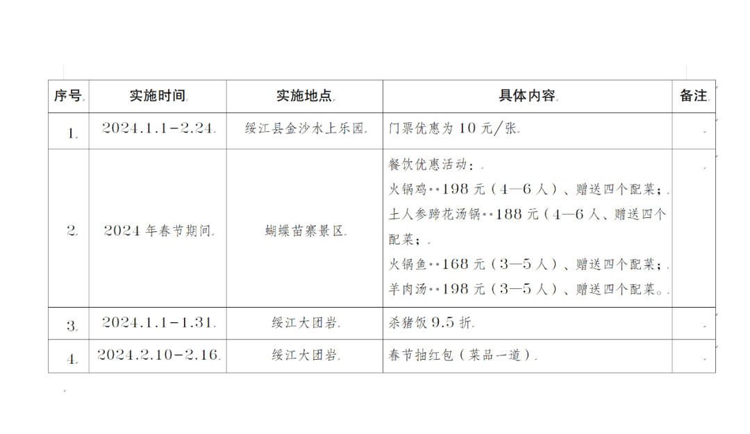 优惠对象:文山州内常住户口居民、已办理文山州居住证居民;优惠时间:2024年2月1日—29日。