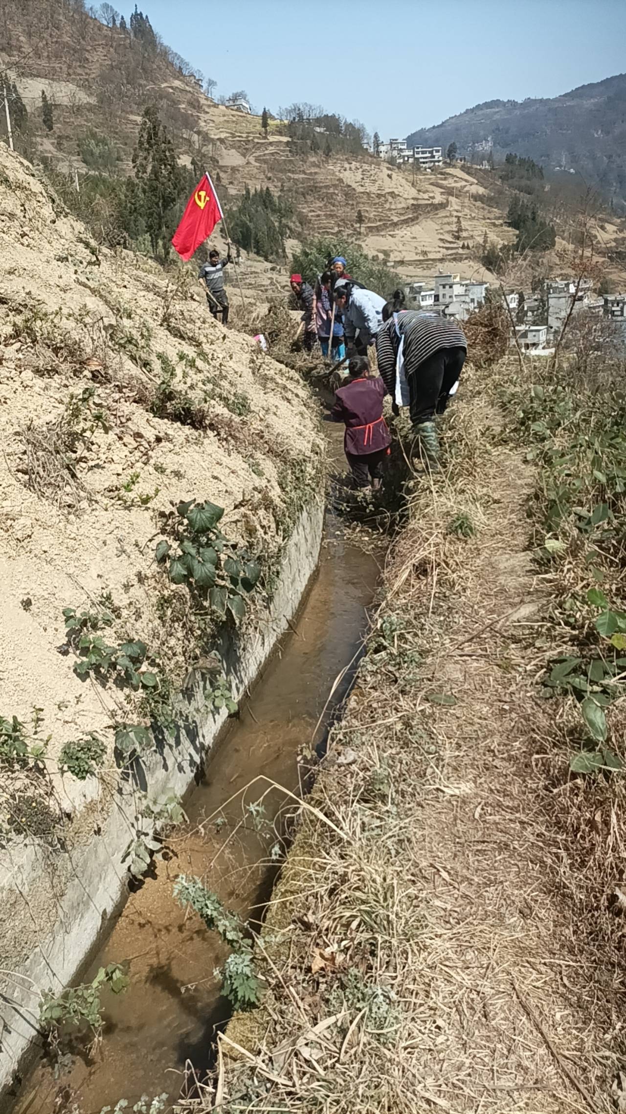 3月5日,在墨翰乡箐林村的田家丫口和野鸡箐两个村民小组50余名党员和群众在党旗的引领下,扛起锄头,穿上水鞋,来到了箐林堰疏通水渠。大家你一锄头,我一撮箕地忙碌着,把堰沟里的淤泥清理到了渠道两侧,经过数小时的努力,长达3公里多的渠道流淌起了滋润春苗的水流,参与行动的党员和群众脸上洋溢着幸福的笑容。