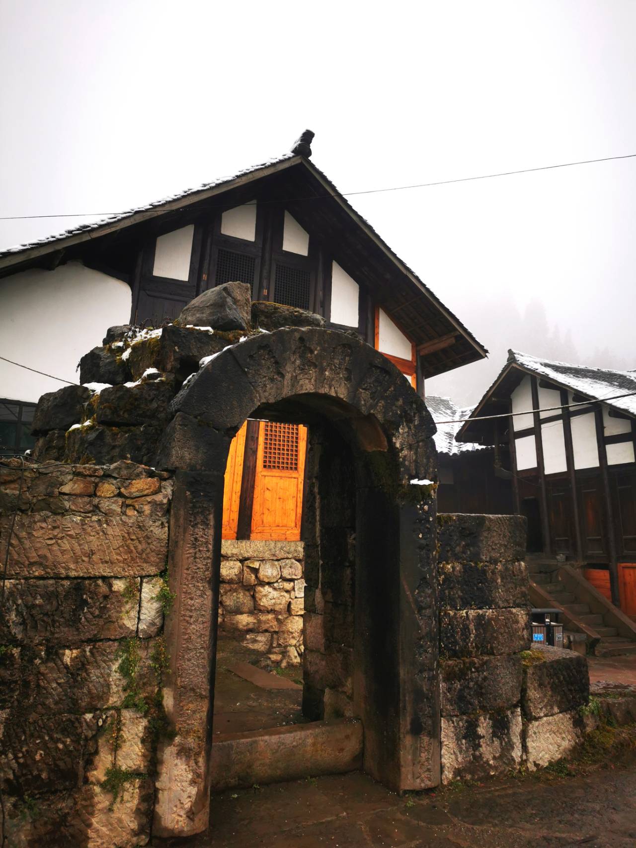 二月里,寒潮未退去,雪中的垕房城堡四合院吊脚楼。实习记者 王韵绫 摄