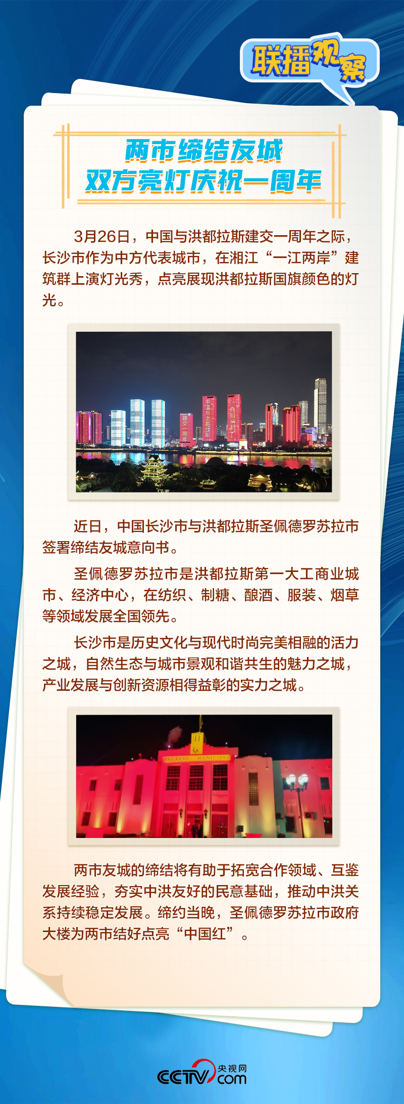 联播+3月26日,习近平主席同洪都拉斯总统卡斯特罗互致贺电,庆祝两国建交一周年。