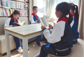 4月26日,在镇雄县九棵树九年制学校,不论是在文化长廊,还是在露天书屋或图书室,到处都摆放着不同类型、不同主题的书籍。学校里时时可读、处处可读的阅读环境,引导并激励着学生爱读书、读好书、善读书。