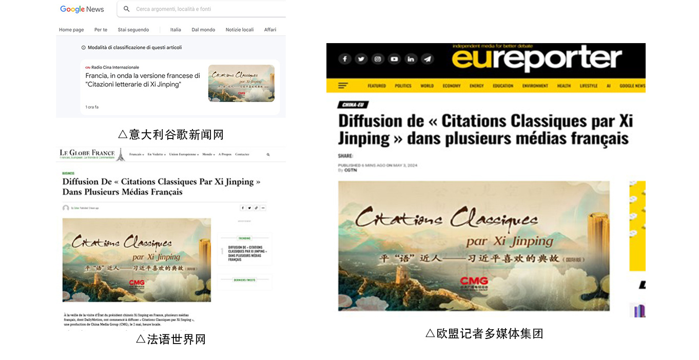 西班牙《阿贝赛报》《真理报》、《欧洲时报》德文网、意大利谷歌新闻网、欧盟记者多媒体集团、总部位于布鲁塞尔的“法语世界网”等多家欧洲主流媒体也对《平“语”近人——习近平喜欢的典故》(国际版)即将播出的消息进行了报道。