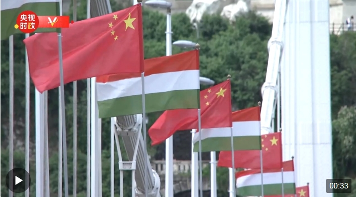 独家视频丨布达佩斯街头中匈两国国旗迎风飘扬