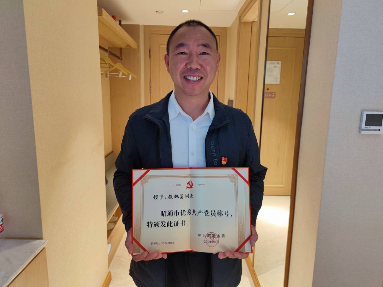 今年7月,市委授予鲁甸县融媒体中心副主任、火德红镇银厂村驻村第一书记顾旭昌优秀共产党员称号。