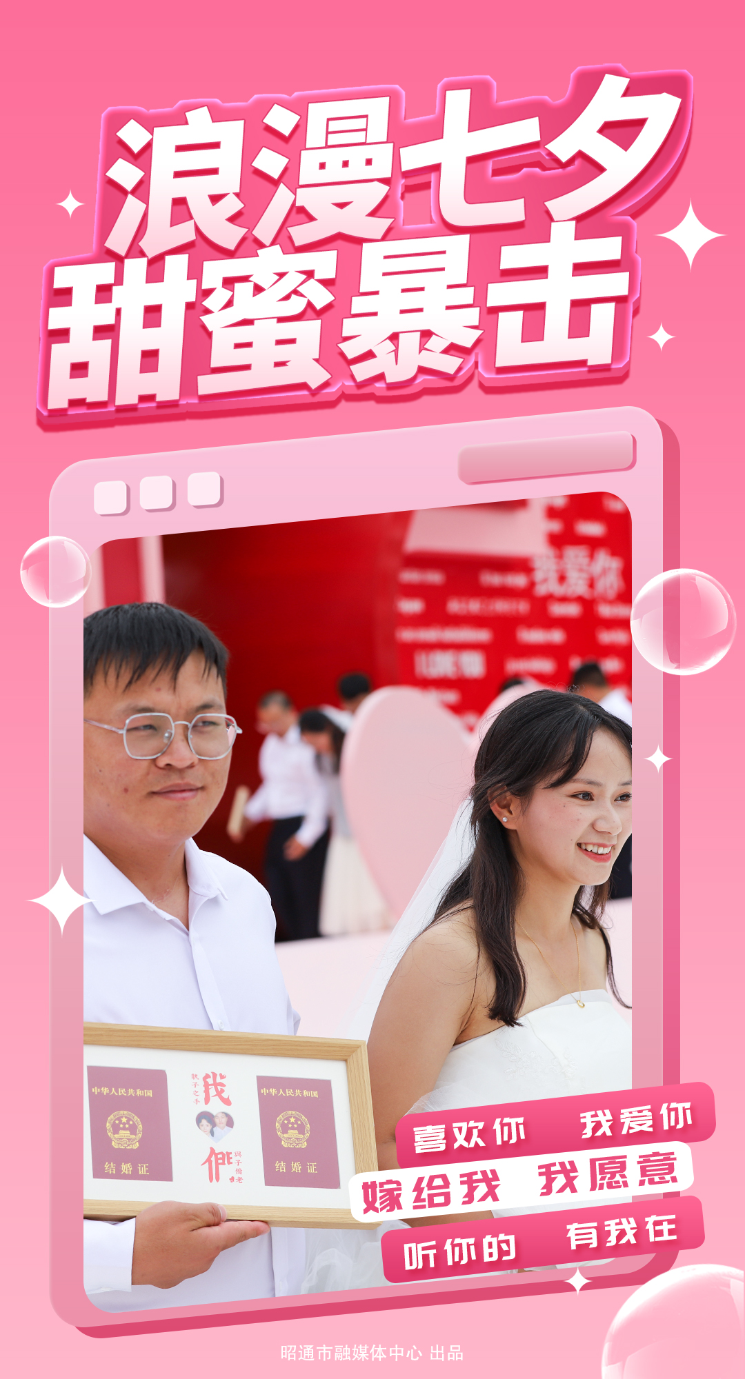 8月10日,一场别开生面的集体婚礼在昭阳区望海楼公园浪漫上演,来自全市各行各业的33对有情人携手共赴这场属于他们的甜蜜爱恋旅程,一组海报见证爱情最美好瞬间。