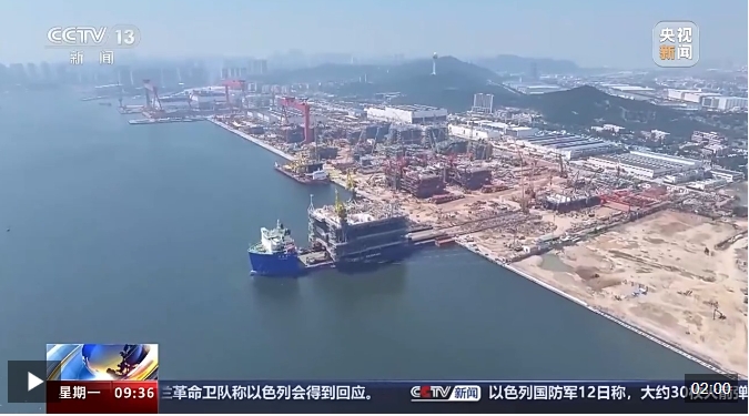 在山东青岛国际化高端装备制造基地,一个重达17000多吨的“巨无霸”,是目前在建国际上最大的油气集输平台。经过34个月的施工建造,今天正式交付,月底将搭乘大型运输船,启程前往6400海里以外的海域进行安装。