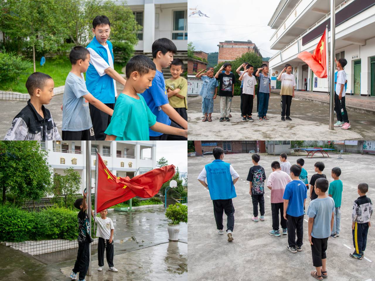 爱国教育是夏令营设计不可分割的一部分。课间休息时,操场上满是孩子们的欢声笑语,但有一群孩子却没有参与大家的游戏,而是在太阳下一次又一次地挥动手臂,训练齐步、敬礼,他们是国旗护卫队。孩子们站立于阳光下,汗水顺着脸颊滑落,却丝毫未减眼中的清澈与坚定。伴随国歌奏响,五星红旗在蓝天白云下缓缓升起,这是偏远的山区最庄严肃穆的升旗仪式。这一刻,时间仿佛被赋予了特殊的意义,成为队员与孩子们心中永恒的记忆。