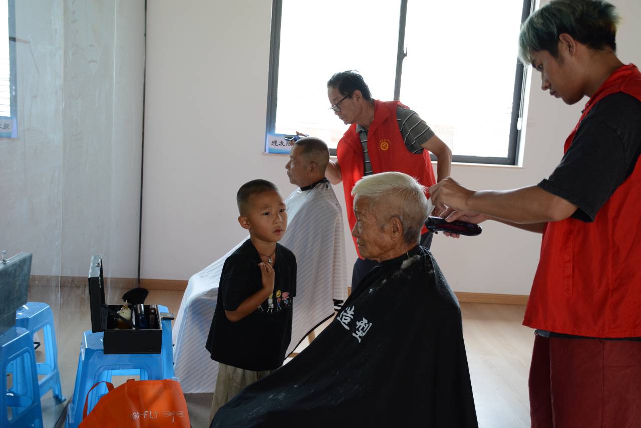 在健身活动室里,受邀的两名文笔社区理发师免费为社区群众理发,“我平时都是免费给我们社区60岁以上的老人们理发,今天听说社区要搞活动,需要志愿者,我就来了,能为大家做点事情,我觉得很满足。”64岁的方后元一边说着,一边麻利地为老人理发。