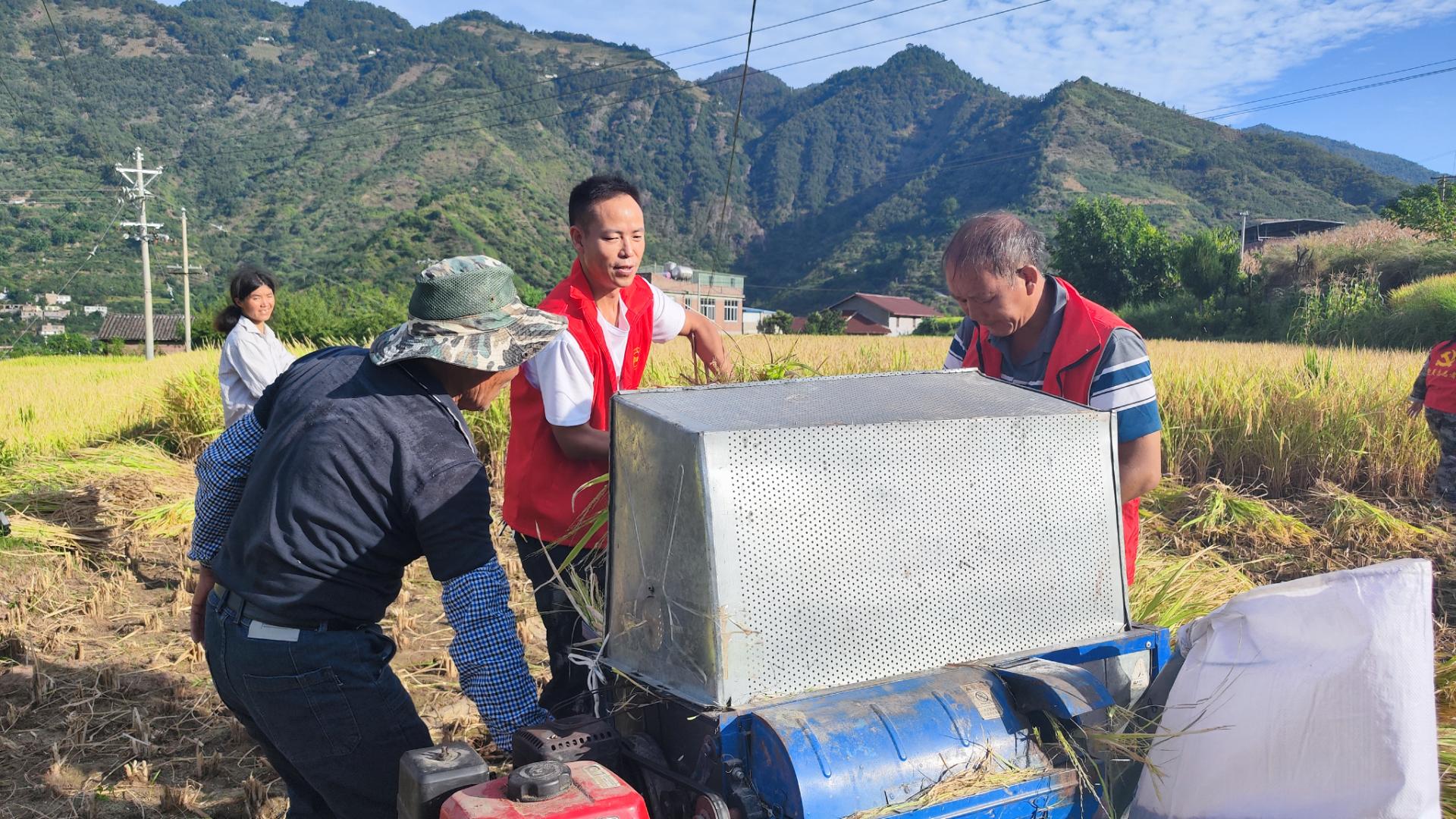 走进角奎街道马窑村,金黄色的水稻铺满了田野,沉甸甸的稻穗压弯了腰。在阳光下,水稻迎风摇曳,翻滚成一层又一层的黄金稻浪,一阵阵稻香扑面而来。村“两委”干部和驻村工作队队员也加入了农户们的收割队伍,有的挥舞着镰刀,熟练地收割着水稻;有的将割下的稻穗放入收割机里进行脱粒,大家在稻田里来回穿梭。随着机器的轰鸣声,金黄的稻谷被源源不断地收入口袋中,丰收的喜悦气息弥漫在空气中。