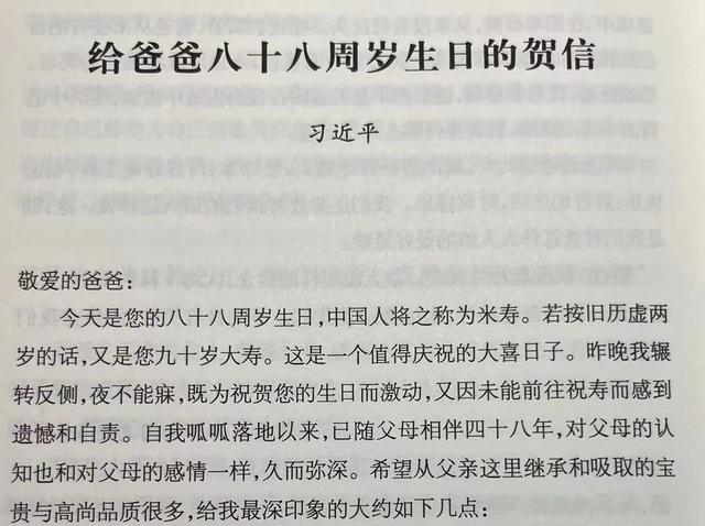 在家尽孝、为国尽忠是中华民族的优良传统。在父亲习仲勋88岁生日时,时任福建省省长的习近平同志公务繁忙,无法面祝寿辰,于是写了一封拜寿信。